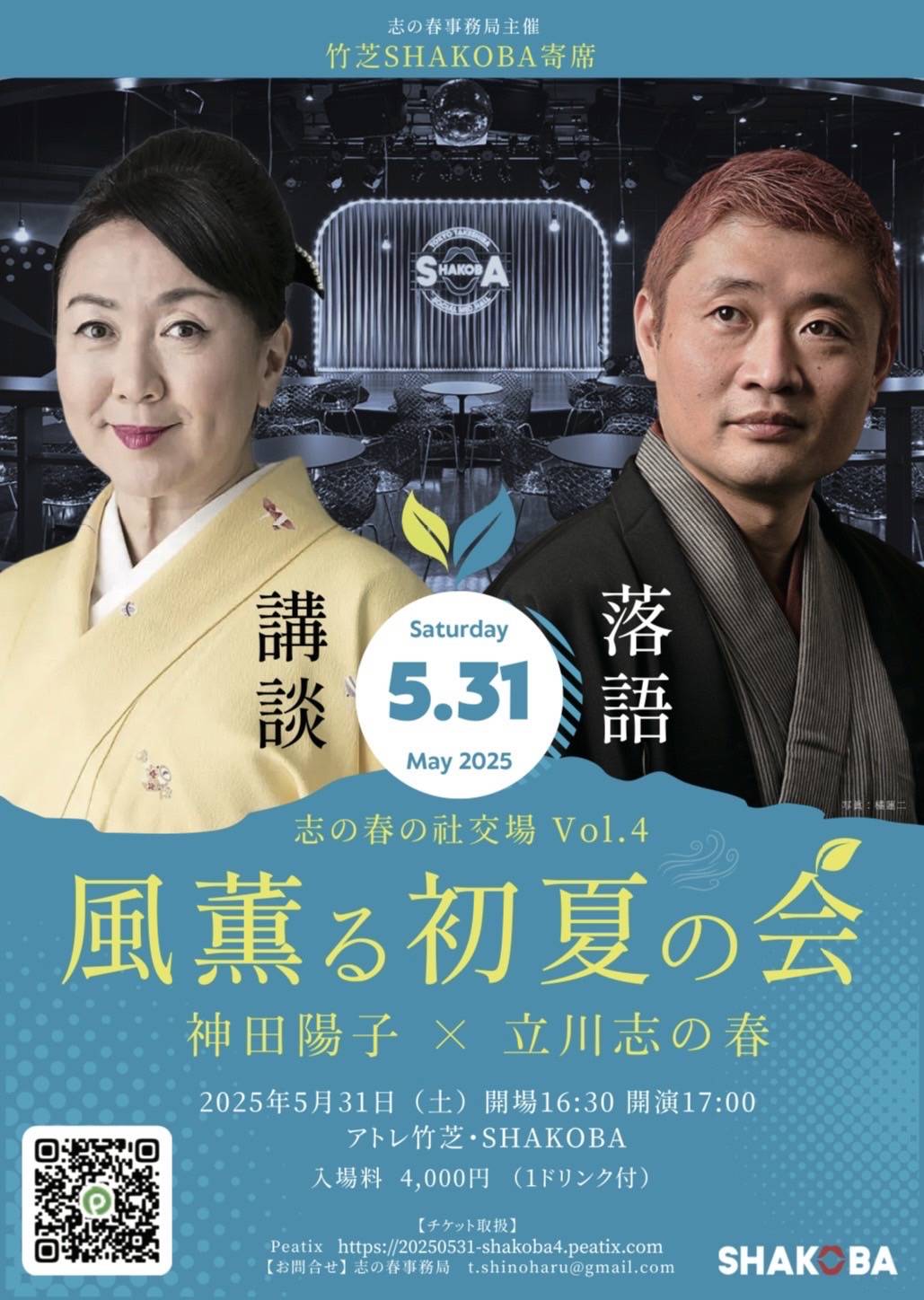 5月31日(土)「志の春の社交場Vol.4 風薫る初夏の会」に祿庵の神田陽子が出演します。ぜひ足をお運びくださ […]