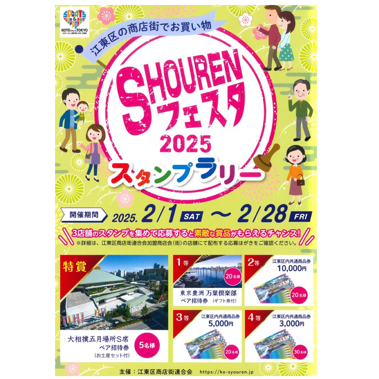 news SHOURENフェスタ2025スタンプラリーのお知らせ 投稿日: 2025年2月8日2025年2月8日 商店街でお買い物をして豪華賞品をGET!江東区の商店街でお買い物、SHOURENフェスタ2025スタンプラリー […]